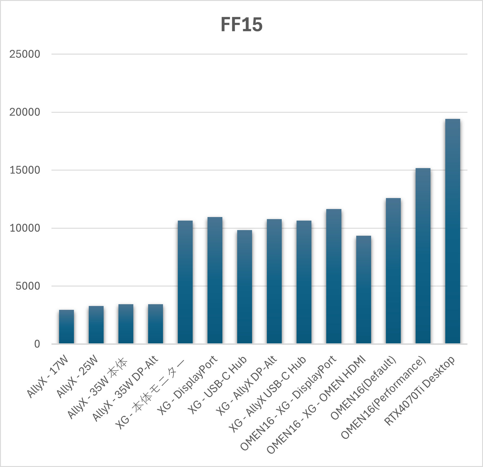 ForzaHorizon 5 ベンチマークモードでも同様の傾向ですが、他と異なり Ally X 単体が踏ん張っています。
